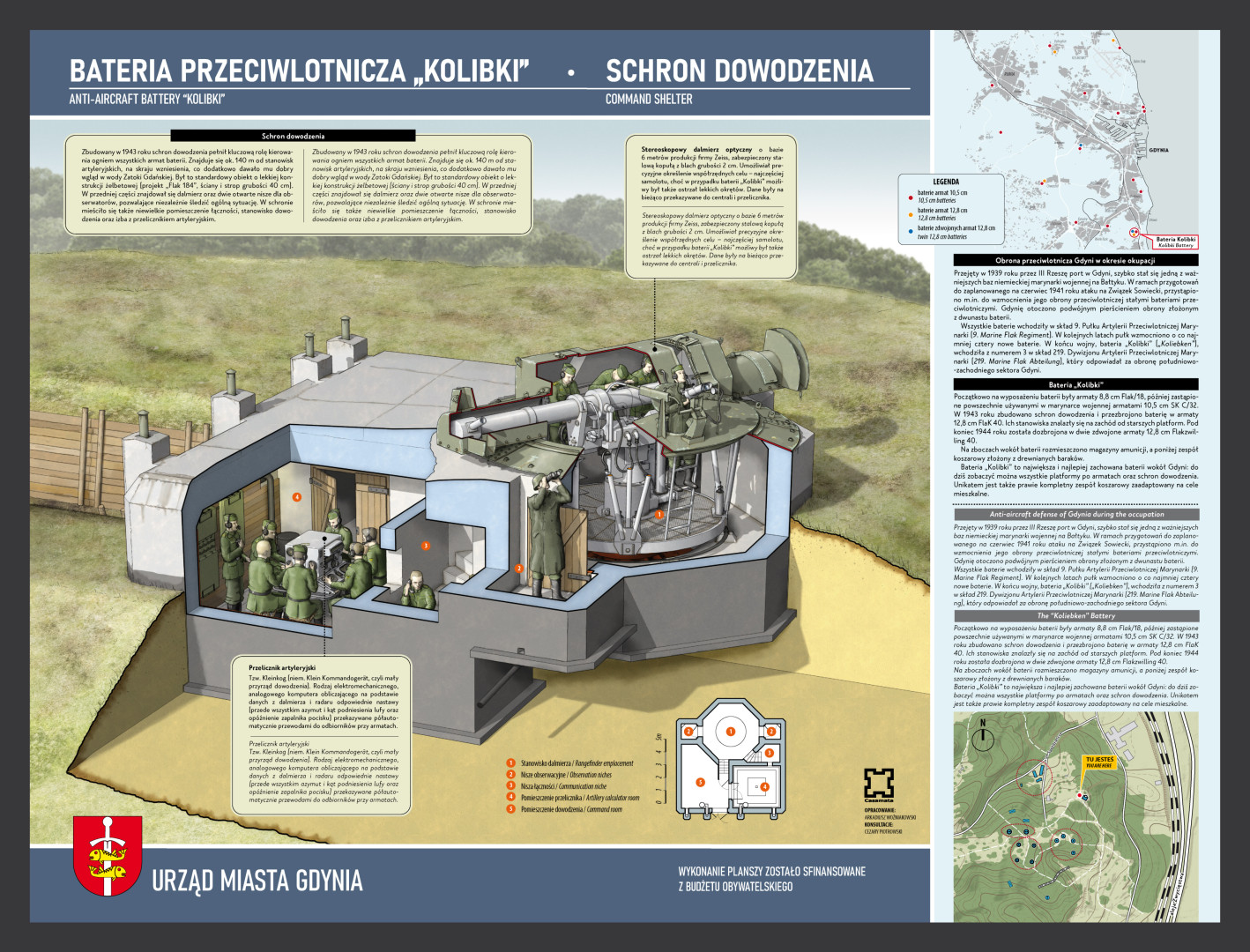 Projekt zakłada ustawienie tablicy informacyjnej z grafikami 3D przedstawiającymi obiekty/budynki historyczne, z opisami i rysem historycznym. Tablica będzie dot. architektury Działek Leśnych okresu międzywojennego. Tablica będzie opracowana w tym samym stylu graficznym co istniejące już tablice dot. schronu na bulwarze i baterii przeciwlotniczej „Kolibki”.