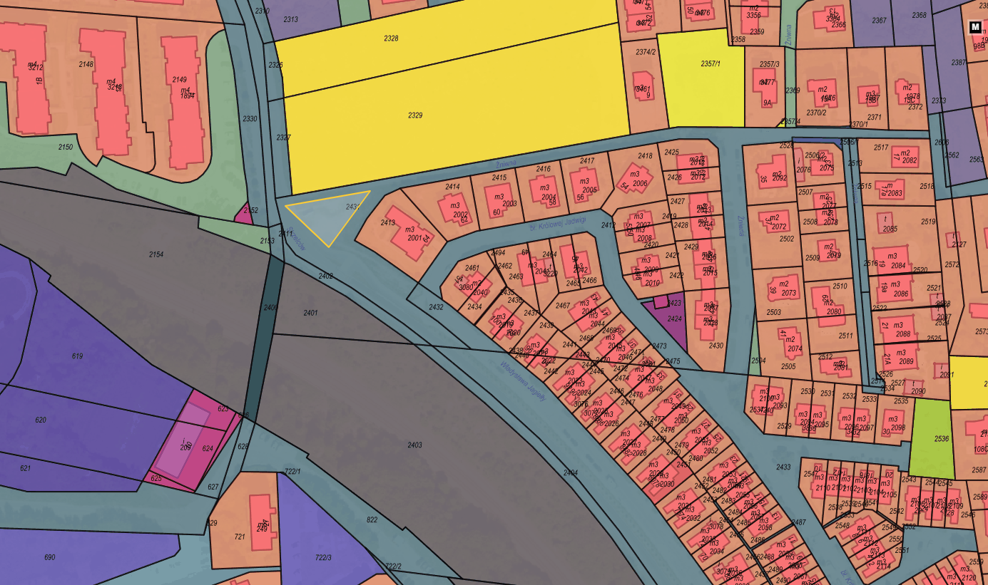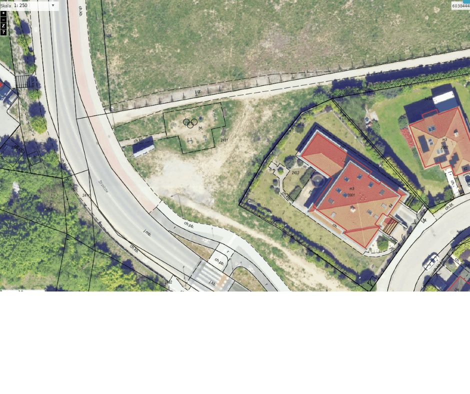 ulica Strzelców działka na której aktualnie znajdują się urządzenia siłowni zewnętrznej.
