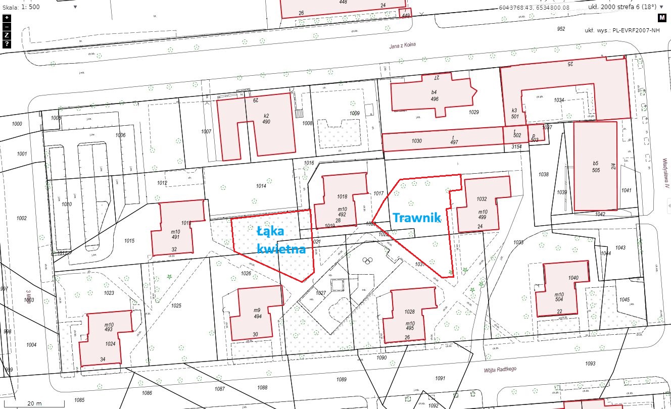Projekt przewiduje renowację dwóch zaniedbanych terenów zieleni, poprzez wykonanie na jednym z nich łąki kwietnej z wieloletnich roślin miododajnych (na terenie pomiędzy placem zabaw a przedszkolem miejskim nr 16; część działek nr: 1015, 1021, 1027), zaś na drugim odtworzenie trawnika (część działek nr: 1017, 1020, 1022, 1031, 1033), przy jednoczesnym zachowaniu dotychczasowego drzewostanu i żywopłotów. Projekt ma na celu uprzątnięcie i renowacje terenu, wzrost jego waloru przyrodniczego (łąka kwietna) oraz zwiększenie możliwości wykorzystania terenu przez dzieci licznie odwiedzające sąsiedni plac zabaw (odtworzenie trawnika).