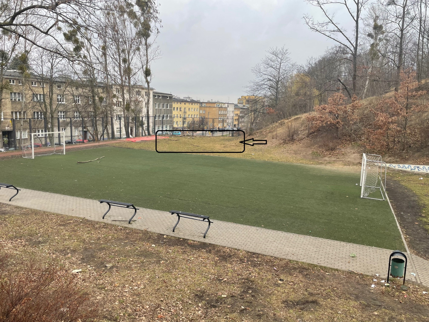 Docelowe miejsce znajduje się za boiskiem do piłki nożnej, obok bieżni lekkoatletycznej. W tej chwili przestrzeń ta jest niezagospodarowana, a budowa siłowni plenerowej wypełni idealnie tę pustkę.