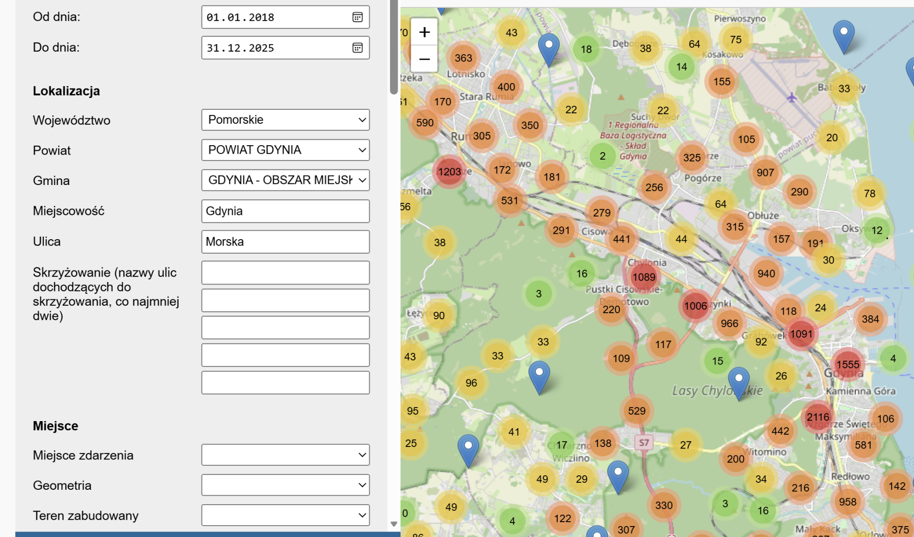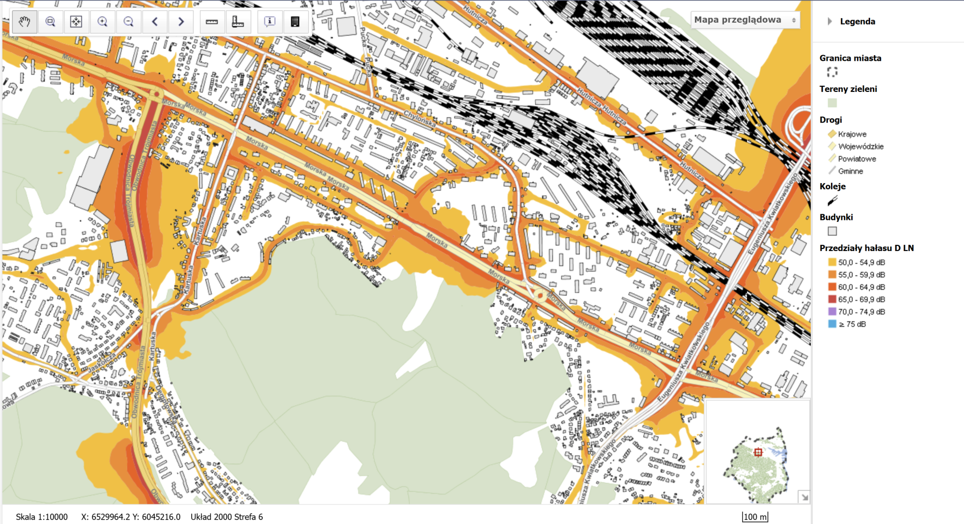 Ulica morska przed przejściami dla pieszych prowadzącymi do szkół oraz ośrodków zdrowia. Odcinek ul. Morskiej pomiędzy skrzyżowaniami z ul. Kartuską oraz ul. Swarzewską