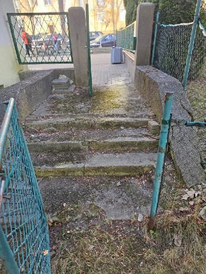 Obecne dojście do przedmiotowej przestrzeni z dziedzińca szkoły wymaga renowacji. Znajdują się tu popękane betonowe schody oraz bramki i siatka, które wymagają przebudowania. Renowacja obecnego dojścia poprzez zbudowanie rampy zapewni możliwość korzystania z tej przestrzeni zarówno dzieciom z grup integracyjnych, osobom starszym (np. poruszające się na wózku inwalidzkim) oraz rodzinom z małymi dziećmi (np. wózki dziecięce). Tak dostosowane miejsce umożliwi prowadzenie spotkań dla całej klasy albo mieszkańców w wieku od 0-120 lat!