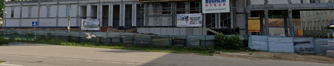 Wzdłuż płotu od strony chodnika przy nowym obiekcie (hala sportowa) przy ul. Morskiej 75 - krzewy i drzewa.